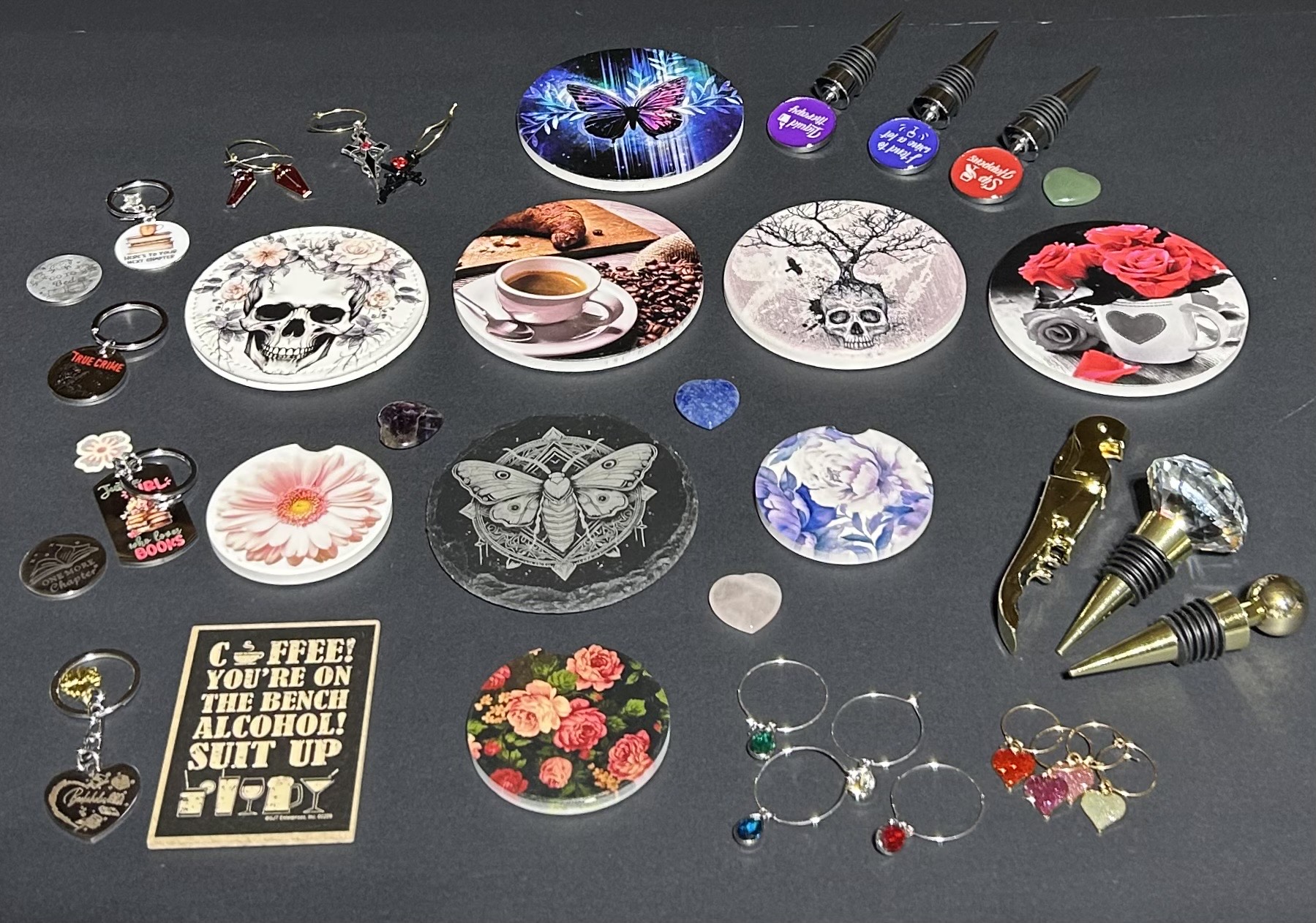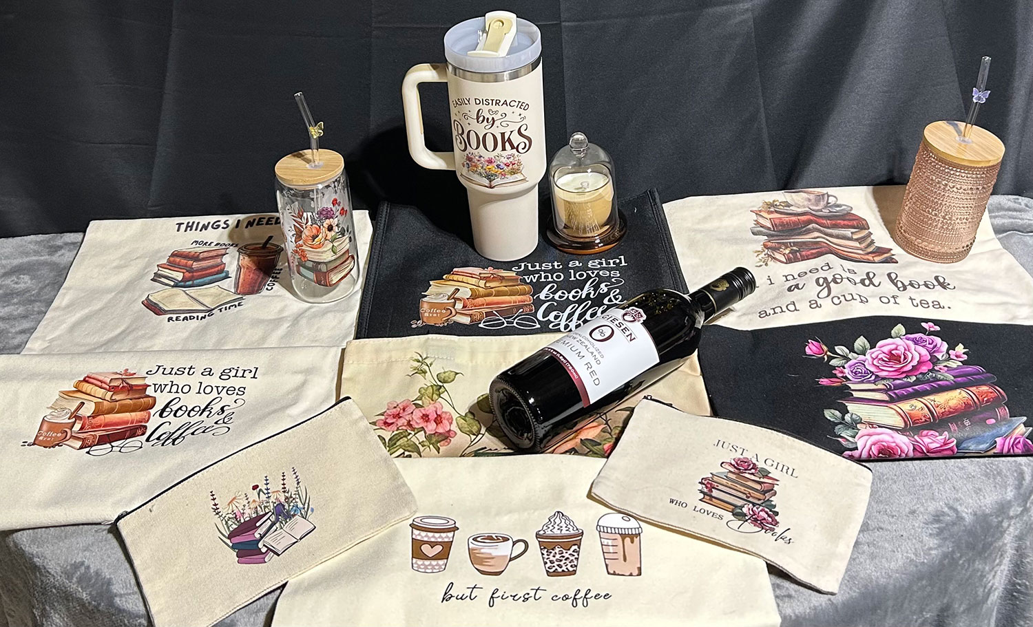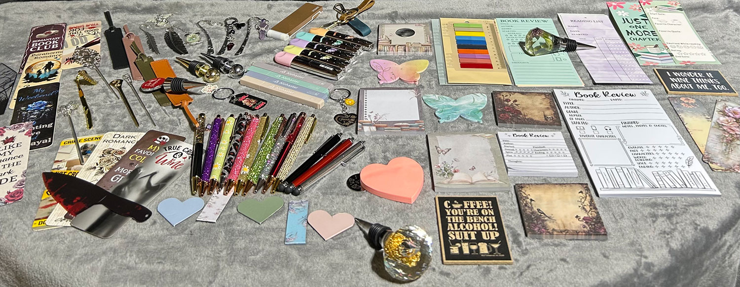 New Pictures Coming Soon Spa bag may include but is not limited to Beauty Masks Fuzzy Socks & Scrunchies Bath & Shower Items Body & Beauty Care And More Snack bag may include but is not limited to Assorted Teas, Coffee & Hot Chocolates Honey, Sugar & Marshmallow Dip Sticks Chips, Pretzels, Crackers & Nuts Chocolates, Cookies & Candy And More Treats Freebies may include but is not limited to Bookish/Theme Stickers Pens, Highlighters & Stylus Book Review & Trackers Note Pads, Color Notes & Bookmarks Wine Charms, Opener or Stopper Coasters & Magnets Key Chains & Coin Flips Theme, Vintage or Daily Wear Jewelry And More Goodies Mystery gifts may include but not limited to Tea Infuser & Tea Towels Drinkware & Tumblers Candle Holders & Candles Genre Puzzle Books/Games Genre Activity & Coloring Books Craft Projects Theme Blankets & Novelties Theme, Vintage or Daily Wear Jewelry And More Surprises